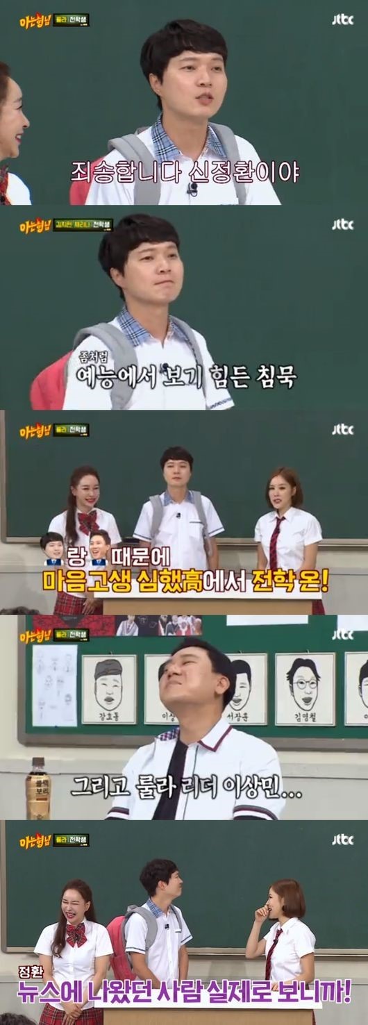 다양한 구설수로 물의를 빚어 7년간 방송 활동을 쉬었던 모 멤버는 한껏 고개를 숙이고 등장했다. "들어가도 되니"라고 걱정스런 표정으로 물으며 문을 연 그는 "죄송합니다"라고 인사했다.