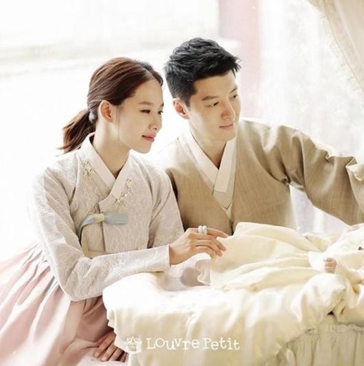 조윤희는 자신의 SNS에 "한복"이라는 글과 함께 한 장의 사진을 게재했다. 공개된 사진 속 그들은 한복을 입고 딸을 바라보고 있다.