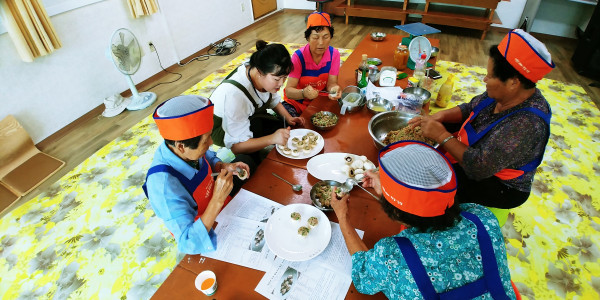 경기 양평군은 지난 6월부터 7회에 걸쳐 지역 대표 농산물인 부추를 활용한 요리를 개발하고자 진행한 ‘지역특화 건강·축제요리 시범사업’을 8월31일 종료했다. 사진은 시범사업에 참여한 사람들이 요리를 하고 있는 모습. (사진제공=양평군청)