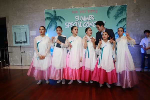 이정훈 강동구청장이 최근 강동아트센터 소극장 드림에서 열린 2018년 강동구 평생학습 ‘Summer Special CONCERT’에 참석해 경연대회에 출전하는 참가자들을 격려했다. 사진은 이 구청장이 참가자들과 기념촬영을 하고 있는 모습. (사진제공=강동구청)