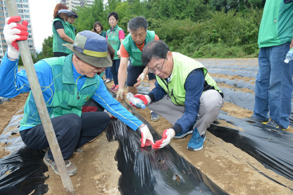 경기 수원시 영통구는 지난 1일 사랑 나눔 영통시민농장에서 김장 무 파종 행사를 진행했다. 이번 행사에는 영통구 새마을협의회와 부녀회, 문고회 등 새마을단체 회원 약 50여명이 참가해 원천동 소재의 1700㎡의 밭에 무를 심었다. (사진제공=영통구청)