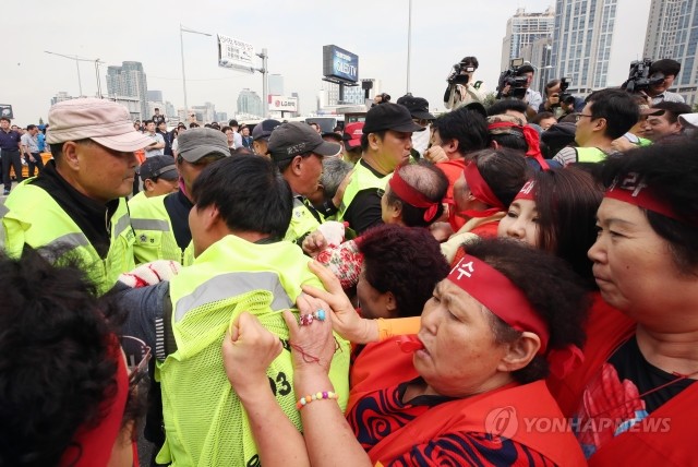 6일 오전 서울 동작구 노량진시장에서 구시장 상인들이 수협의 명도 강제집행에 맞서 저항하고 있다.
