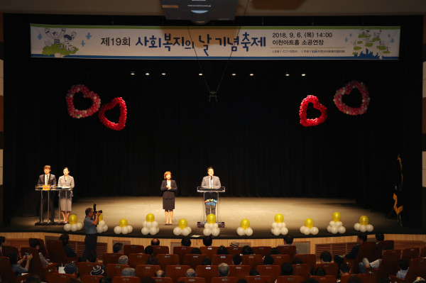 경기 이천시는 최근 이천아트홀 소공연장에서 제19회 사회복지의 날 기념 축제를 개최했다. 이날 행사에는 엄태준 시장을 비롯한 도의원, 시의원, 기관사회 단체장, 사회복지시설 종사자 및 자원봉사자, 시민 등 400여명이 참석했다. 사진은 엄 시장이 인사말을 하는 모습. (사진제공=이천시청)