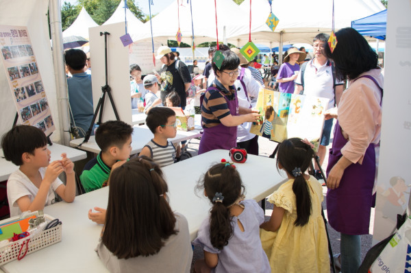지난 8일 ‘Y.E.S 양천, 책으로 꿈꾸는 도서관’을 주제로 양천공원에서 '제5회 양천 북페스티벌'이 개최됐다. 사진은 북페스티벌에 참여한 아이들이 그림책 이야기를 귀 기울여 듣고 있는 모습. (사진제공=양천구청)