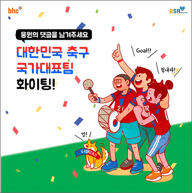 [시민일보=고수현 기자]치킨 프랜차이즈 bhc치킨이 축구 국가대표 평가전를 응원하기 위해 ‘BSR과 함께하는 국가대표 응원 이벤트’를 진행한다.