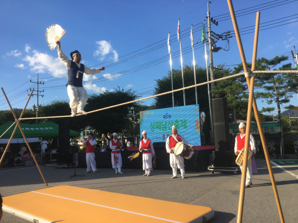 경기 동두천시 상패동 주민자치위원회는 지난 8일 상패동 행정복지센터에서 지역내 민·관·기업 등 모두가 합심해 함께 행복한 마을을 만들기 위한 '제6회 상패남산축제'를 성황리에 개최했다. 사진은 축제에서 줄타기 공연이 진행 중인 모습. (사진제공=동두천시청)