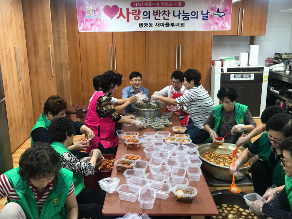 경기 수원시 팔달구 행궁동 새마을부녀회에서는 지난 14일 지역내 저소득 노인을 위해 '사랑의 반찬나눔 행사'를 했다. 사진은 참여자들이 열심히 반찬을 만들고 있는 모습. (사진제공=팔달구청)
