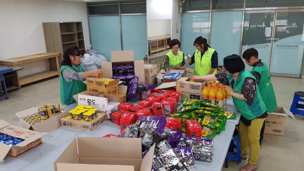 경기 동두천시 송내동행정복지센터는 최근 송내동 지역사회보장협의체, 송내동 새마을 부녀회와 함께 홀몸노인 30가구에 전달하기 위한 '마음담은 명절 선물상자' 30개를 만들었다. 사진은 참여자들이 선물상자를 만들고 있는 모습. (사진제공=동두천시청)