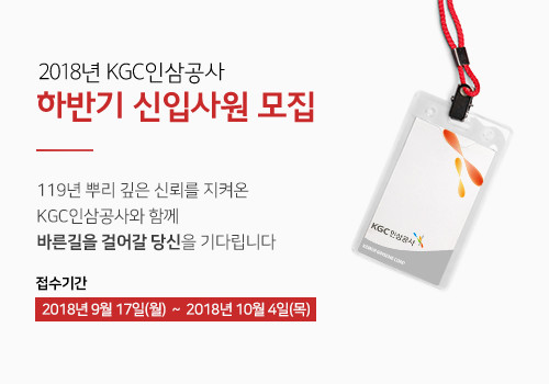 [시민일보=고수현 기자]KGC인삼공사가(대표이사 김재수) 2018년 대졸 신입사원 채용을 실시한다.