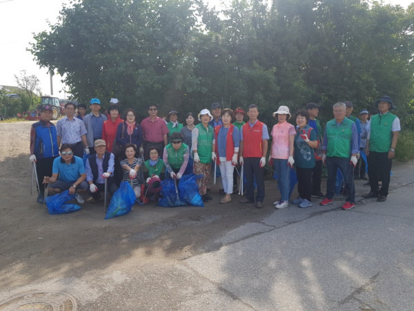 경기 김포시 사우동은 지난 17일 민족 최대의 명절인 추석을 앞두고 고향을 찾는 귀성객과 시민들에게 쾌적한 도시 이미지를 심어주고자 범시민 추석맞이 일제 대청소를 실시했다. 사진은 참여자들이 기념촬영을 하는 모습. (사진제공=김포시청)