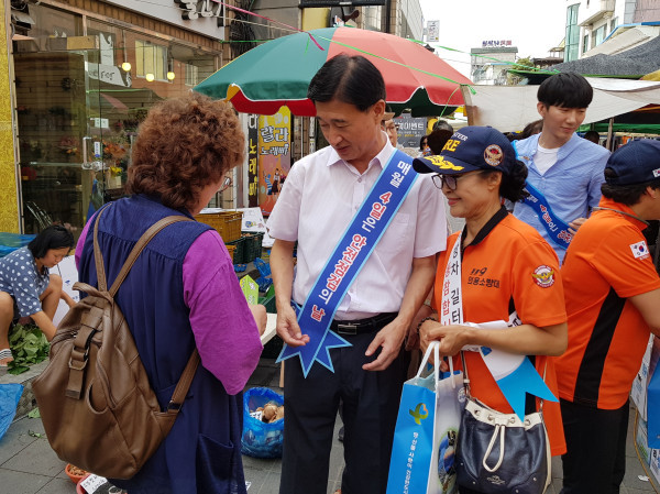 경기 양평군은 18일 군민의 안전의식을 높이고, 생활안전을 관리한다는 취지로 양평물맑은전통시장에서 ‘제270차 안전점검의 날 캠페인’을 실시했다. 사진은 캠페인에 참여한 봉사자들이 홍보활동을 하는 모습. (사진제공=양평군청)