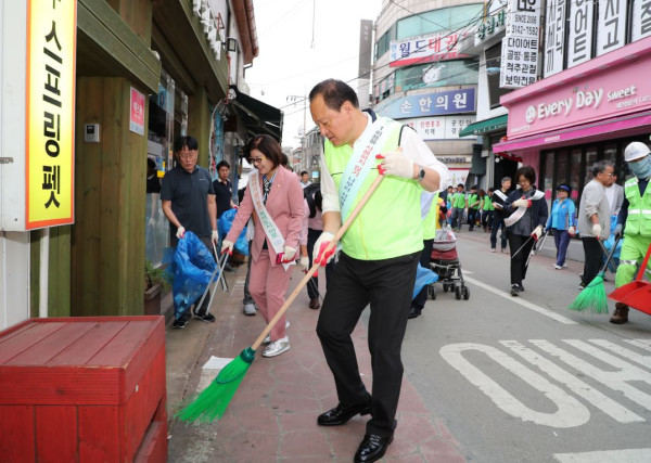 유동균 서울 마포구청장은 19일 오전 7시 마포구 망원시장, 망원역 인근에서 추석맞이 대청소와 1회용품 사용하지 않기 캠페인을 실시했다. 이날 행사는 지역 주민과 직능단체회원, 상인회, 공단·재단 직원, 학생, 공무원 등 약 1500여명이 함께 했다. (사진제공=마포구청)