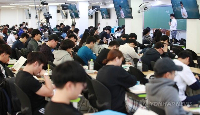 추석연휴를 앞두고 19일 서울 동작구 노량진의 윌비스 신광은 경찰학원에서 경찰공무원을 준비하는 수험생들이 강의를 듣고 있다.
