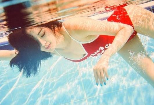 이주연은 레드 컬러의 스윔 슈트를 입고 발랄한 분위기를 자아냈다. 이주연은 물 속에서 신비로운 매력을 발산했다.