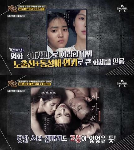 출연 당시 김태리는 파격적인 노출신과 더불어 동성애 연기로 세간의 화제를 불러모은 것.