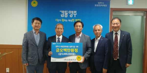 주식회사 크로바가구, 양주시에 장학기금 500만원 쾌척