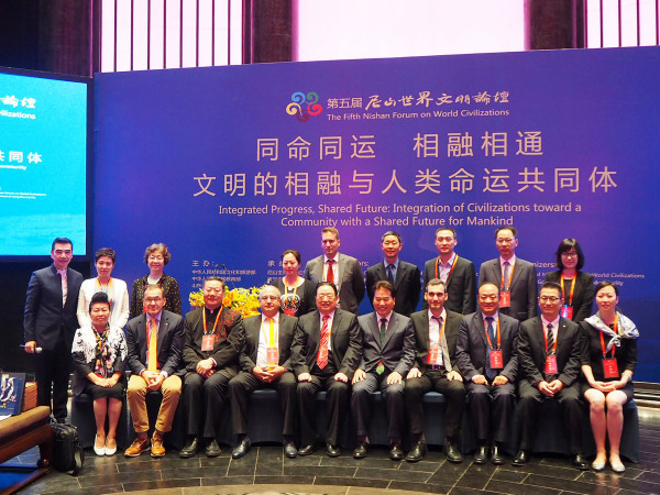 백군기 경기 용인시장이 공자의 탄생지로 유명한 중국 산둥성 지닝시 취푸에서 열린 ‘제5회 니산세계문명포럼’에 참석해 산둥성과 시의 문화·경제 교류를 제안했다. 사진은 백 시장 등 포럼 참석자들이 기념촬영을 하는 모습. (사진제공=용인시청)