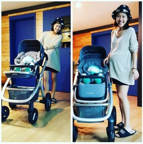 또 다른 사진에서 그녀는 아이와 함께 산책하는 것을 미리 연습하듯 유모차에 인형을 태우고 끌고 있는 모습이다. 장난기 가득한 미소가 보는 이들까지 웃음 짓게 만들며, 배만 불렀을 뿐 날씬한 몸매를 유지하고 있어 눈길을 끈다.