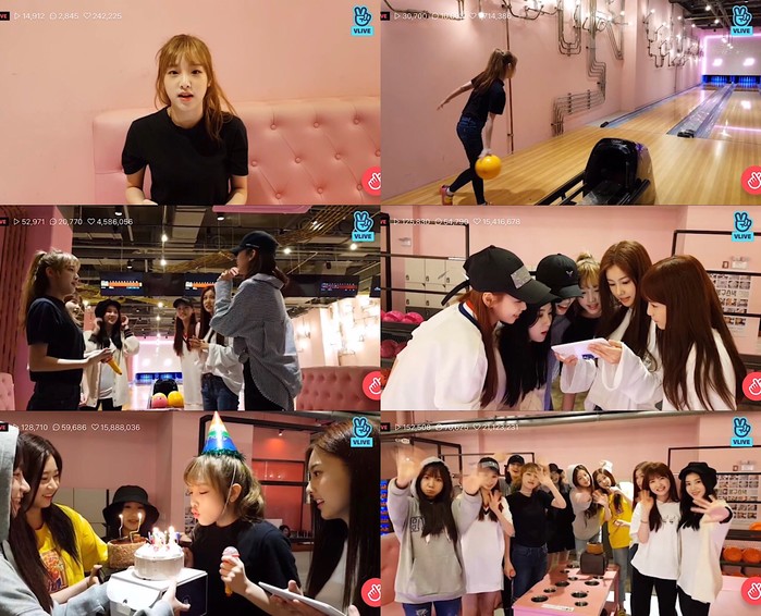 지난 29일 아이즈원 네이버 V앱 공식 채널을 통해 최예나의 생일을 맞아 볼링 나들이에 나선 아이즈원 멤버들의 V 라이브 방송이 진행됐다.