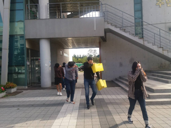 경기 안산시 본오1동 행정복지센터는 최근 청사내 화재발생에 대비한 민·관합동 소방훈련을 실시했다. 사진은 이날 소방훈련 참여자들이 대피 훈련을 하고 있는 모습. (사진제공=안산시청)