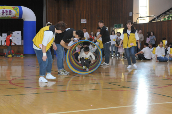 경기 동두천시 어린이집연합회는 지난 29일 시민회관 체육관에서 지역내 가정분과 어린이집 추계체육대회를 개최했다. 학부모 및 아이들, 보육교사 등 600여명이 참여한 이번 행사에서는 한마음 달리기, 공 굴리기 등 다양한 종목이 진행됐다. 사진은 어린이들이 장애물을 통과하고 있는 모습. (사진제공=동두천시청)