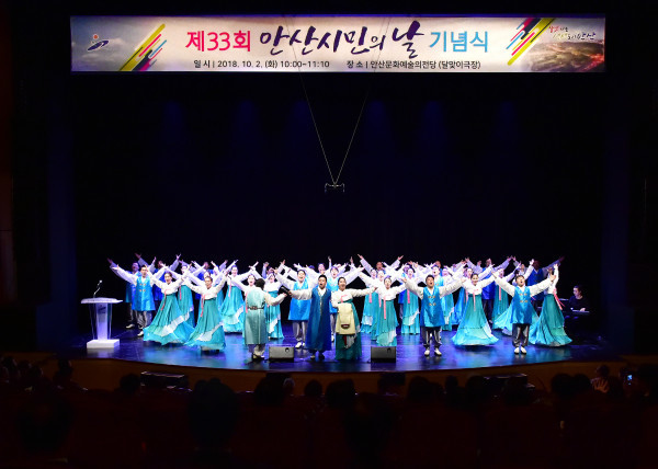 최근 경기 안산문화예술의전당 달맞이극장에서 열린 ‘제33회 안산시민의 날’ 기념식이 표창장 수여, 동영상 상영, 축하공연 등으로 성황리에 개최됐다. 사진은 안산시립합창단의 축하 공연이 진행되고 있는 모습. (사진제공=안산시청)