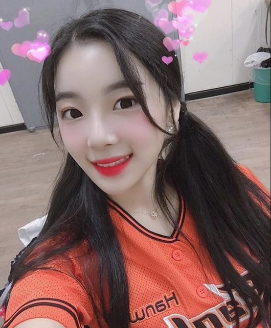 공개된 사진 속 그는 한화이글스 유니폼을 입고 카메라를 바라보고 있다. 그는 물오른 미모로 네티즌들의 관심을 모았다.