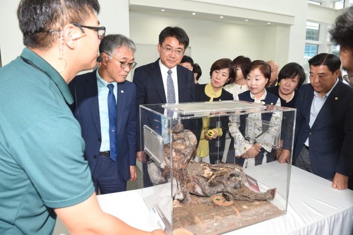 | ▲ 나비정원 개관식에 참석한 오승록 구청장 등 관계자들이 도슨트의 설명을 듣고 있다.(사진제공=노원구청) | ||