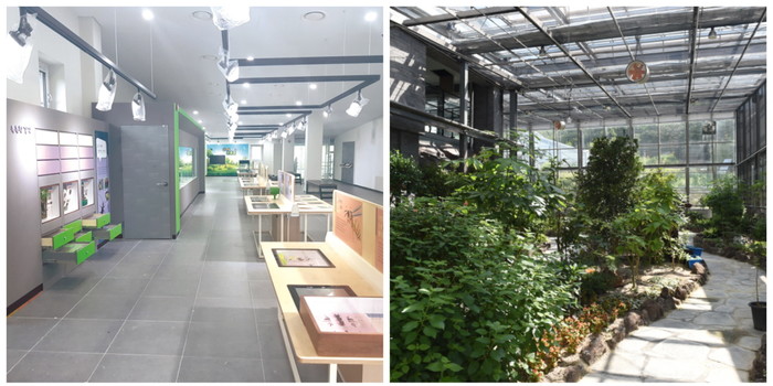 | ▲ 나비정원 내 들어선 곤충체험관(왼쪽)과 나비온실의 내부 전경.(사진제공=노원구청) | ||