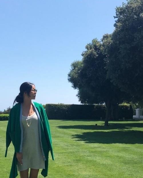 사진 속 이혜영은 선글라스를 끼고 흰 원피스를 입어 세련된 분위기를 자아낸다. 앉아있는 그녀의 몸매는 섹시한 느낌을 준다.