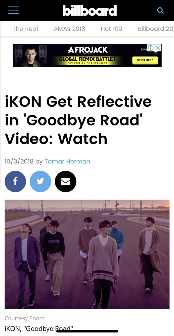 3일(현지 시간), 빌보드는 ‘iKON Get Reflective in 'Goodbye Road' Video: Watch (아이콘, ‘이별길’ 뮤직비디오에서 과거를 추억하다)’라는 제목으로 아이콘의 컴백을 주목했다.