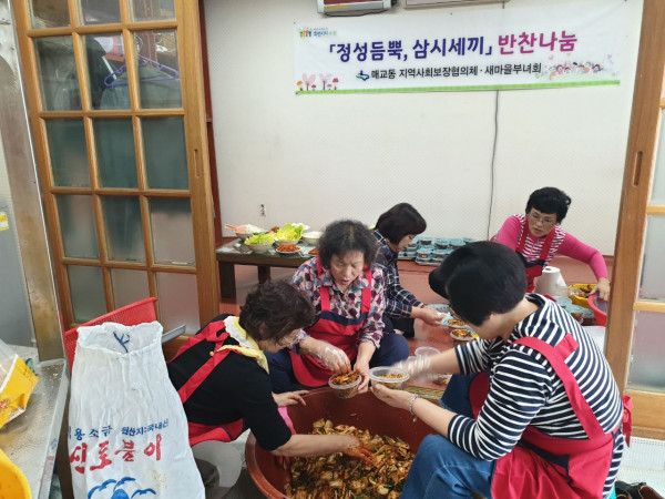 경기 수원시 팔달구 매교동에서는 지난 8일 지역사회보장협의체가 후원하고 새마을 부녀회 주관으로 지역내 저소득 소외계층을 위한 '반찬나눔 행사'를 진행했다. 사진은 참여자들이 음식을 만들고 있는 모습. (사진제공=팔달구청)