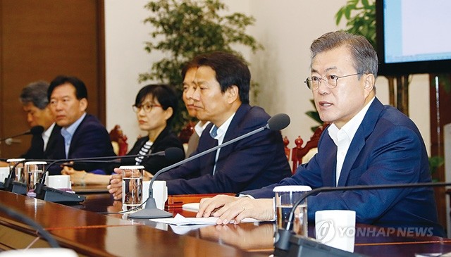 문재인 대통령이 10일 오전 청와대 여민관에서 열린 수석ㆍ보좌관회의를 주재하고 있다.