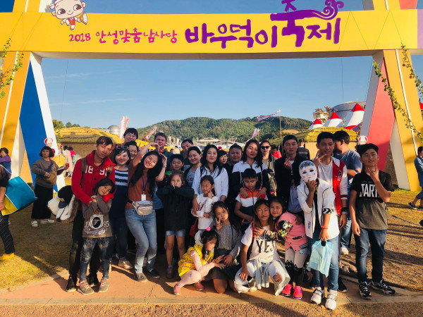 최근 경기 안성시건강가정·다문화가족지원센터는 다문화가족을 대상으로 안성시티투어를 진행했다. 사진은 이번 시티투어에 참여한 다문화가족들이 안성맞춤 남사당 바우덕이 축제장을 방문해 기념촬영을 하는 모습. (사진제공=안성시청)