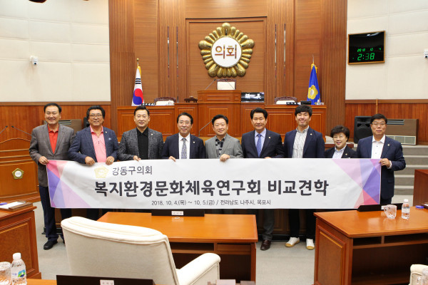 양평호 복지환경문화체육연구회장은 “복지환경문화체육연구회를 구성하고 첫 비교시찰이었던 만큼 의회와 지역의 발전을 위한 동료 의원님들의 강한 열정과 의지를 느낄 수 있었다”며, “앞으로도 전문성을 갖춘 선진의회로서 구민들의 복리증진에 기여할 수 있는 다양한 방안과 정책을 연구하도록 최선을 다하겠다”고 말했다.