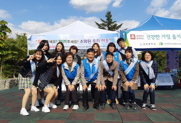 인천 계양구 작전1동 주민센터는 11일 보장협의체 위원들과 함께 된밭공원에서 '복지사각지대 발굴 캠페인'을 실시했다. 사진은 캠페인에 참여한 학생들과 위원들이 기념촬영을 하는 모습. (사진제공=계양구청)