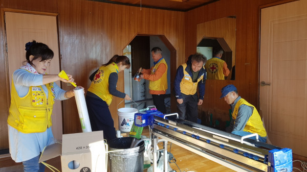 대한적십자사 경기도지사 연천전곡한마음봉사회와 비둘기봉사회는 11일 연천군 전곡읍 은대리에 위치한 취약계층 홀몸노인 가구를 방문해 사랑의 집수리 봉사활동을 실시했다. 사진은 집수리를 하고 있는 관계자들의 모습. (사진제공=연천군청)