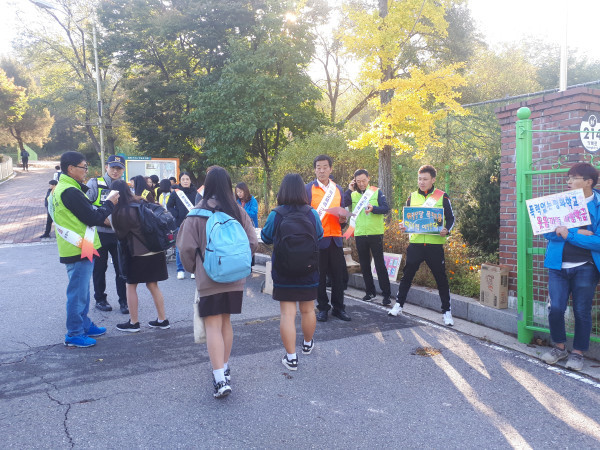 경기 포천시 영북면은 11일 학생들의 등교시간에 맞춰 교사 및 학생자치회, 학부모회, 포천경찰서 및 영북파출소, 영북자율방범대원 등과 함께 ‘학교폭력 예방 캠페인’을 진행했다. 사진은 캠페인에 참여한 관계자들의 모습. (사진제공=포천시청)