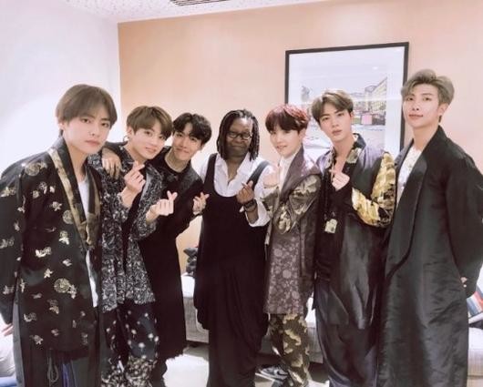방탄소년단은 최근 공식 SNS에 "우리가 우피 골드버그를 만났다"라는 설명과 함께 사진을 공개했다.