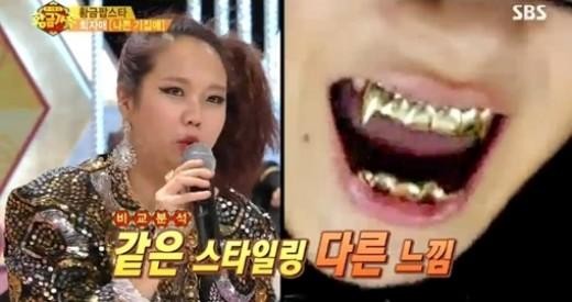 특히 홍현희는 '나쁜기집애' 무대에서 금색 마우스피스를 착용해 카리스마를 더했다. 하지만 홍현희가 착용한 금색 마우스피스는 초콜릿 포장지인 금박지로 알려져 폭소를 유발했다.