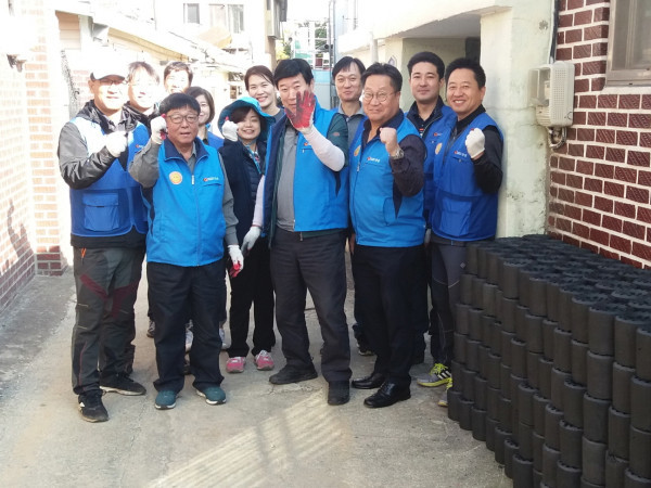 경기 안성시 공도읍 행정복지센터 직원들은 지난 13일 2개 그룹으로 나눠 지역내 저소득 취약계층을 위한 연탄 전달 및 사랑의 빵 만들기 봉사활동을 진행했다. 사진은 연탄 전달에 참여한 직원들이 기념촬영을 하는 모습. (사진제공=안성시청)