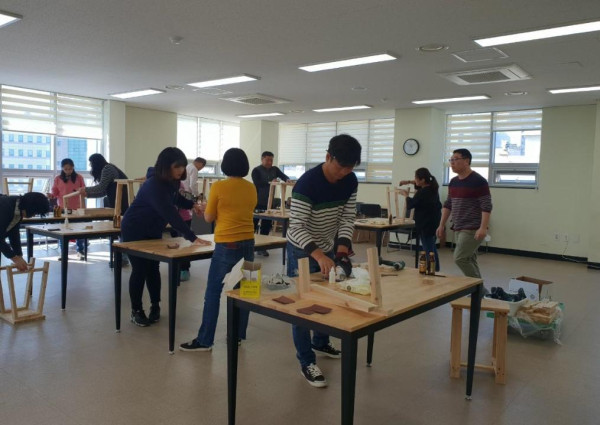 인천 계양구 효성1동 주민자치위원회는 최근 주민대상 주말 무료 특강을 개설했다. 이번 특강은 목공 체험교육과 로봇 코딩 등의 프로그램으로 주말마다 운영하며 오는 11월 마지막 토요일까지 진행된다. 사진은 참여자들이 목공 체험을 하고 있는 모습. (사진제공=계양구청)