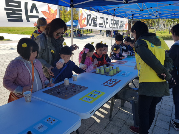경기 김포시는 유아숲 교육의 효과를 알리고 부모와 아이가 함께 숲체험에 참여할 수 있는 축제의 장을 마련하기 위해 최근 양일간 한강중앙공원에서 제1회 김포시 유아숲 체험 축제 '숲 사랑 아이 놀이 축제'를 개최했다. 사진은 축제에 참여한 어린이들이 식물 메모리 카드놀이를 하고 있는 모습. (사진제공=김포시청)