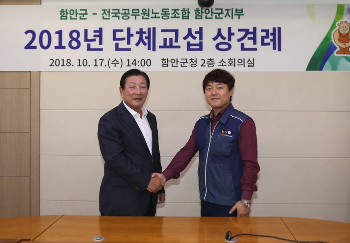 이번 군과 함안군공무원노조와의 단체교섭은 2018년 3월 29일 전국공무원노동조합이 법적노조로 설립 신고된 이후 최초 실시되었다. 군 관계자는 이를 노사 양측 소통의 기회로 활용해 바람직한 노사문화를 정착하고 공직사회 사기진작의 계기로 삼을 계획이라고 밝혔다.