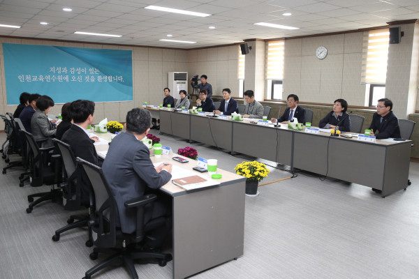 최근 인천시의회 교육위원회가 교직원수련원, 교육연수원, 학생교육문화회관, 평생학습관 등 인천광역시교육청 주요 직속기관의 현장 방문을 실시하고 기관별 현장의 목소리를 청취했다. 사진은 기관 관계자들과 현안사항에 대해 논의하고 있는 교육위원회의 모습. (사진제공=인천시의회)