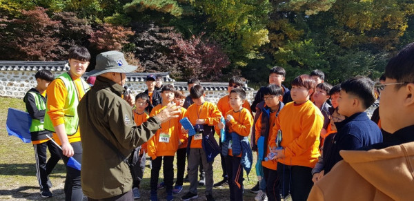 경기 광주시는 21일 ‘2018년 남한산성 청소년 역사캠프’를 성황리에 마무리했다. 지난 20일부터 1박2일간 남한산성과 동부인재개발원에서 진행된 이번 행사에는 지역내 초등학생 60명이 참여했다. 사진은 학생들이 문화해설사의 설명을 듣고 있는 모습. (사진제공=광주시청)
