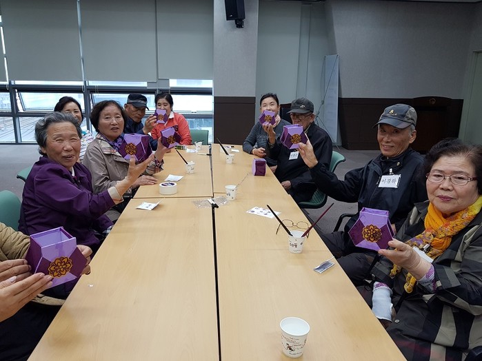 당일 프로그램에 참여한 최고령 참전유공자 서 모(89세) 어르신은 “여기 와서 친구도 만나고, 웃고 얘기하면서 예쁜 한지로 보관함도 만들어 가져가니 참 재미난다.” 라며 소감을 전했다.