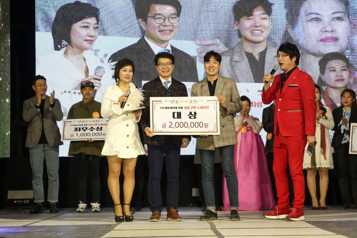 | ▲ 정원오 성동구청장이 ‘성동구민 노래자랑' 대상 수상자와 기념촬영을 하는 모습.(사진제공=성동구청) | ||