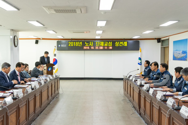광진구와 전국공무원노동조합 서울지역본부 광진구지부가 22일 오전 10시 구청 기획상황실에서 ‘2018년 단체교섭 상견례’를 가졌다. 이날 상견례에는 노사 양측 대표 교섭위원인 김선갑 구청장과 송기영 노조지부장 등 교섭위원 20명이 참석한 가운데 열렸다. 사진은 관계자들이 이야기를 나누고 있는 모습. (사진제공=광진구청)