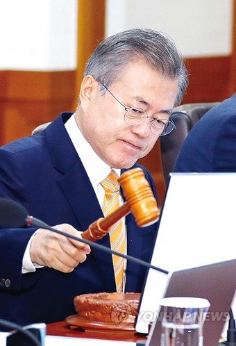 문재인 대통령이 23일 오전 청와대에서 열린 국무회의를 주재하고 있다. 이날 국무회의에서는 3차 남북정상회담에서 채택된 ‘9월 평양 공동선언'과 '역사적인 판문점 선언 이행을 위한 군사 분야 합의서’가 상정됐다.